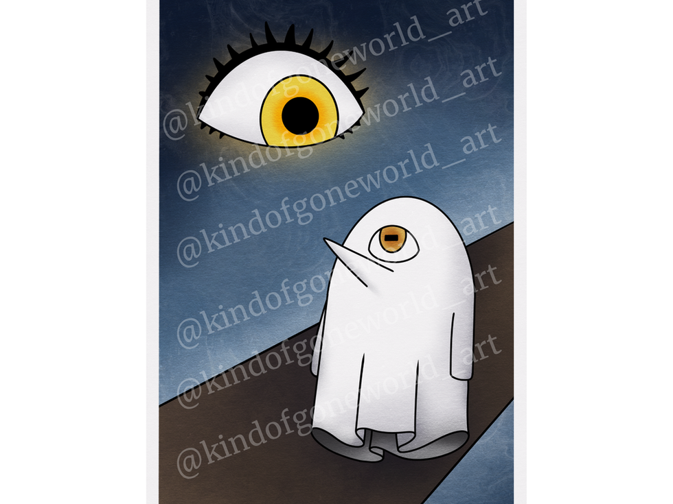 Ele não sabe bem onde está. O chão é escuro, o céu é fundo azul e lá em cima — um olho enorme que já estava esperando por ele.